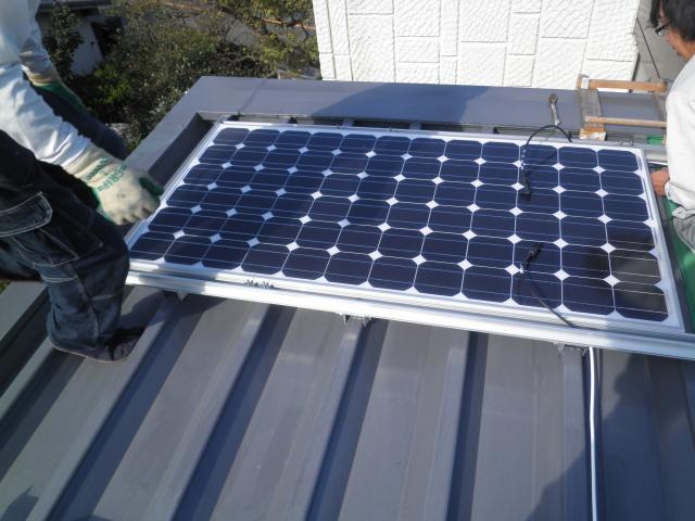 太陽光発電 2011年10月26日インターネットよりお問合せいただいたお客様宅にて太陽光発電システムを折半屋根へ設置工事を行いました。
