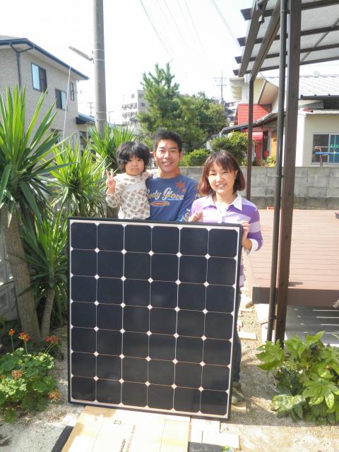 太陽光発電 2011年11月11日設置工事の朝、ご家族で記念撮影(パシャ!)