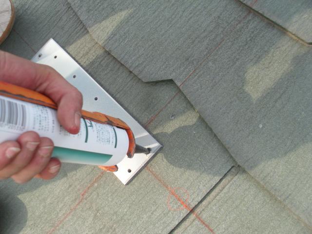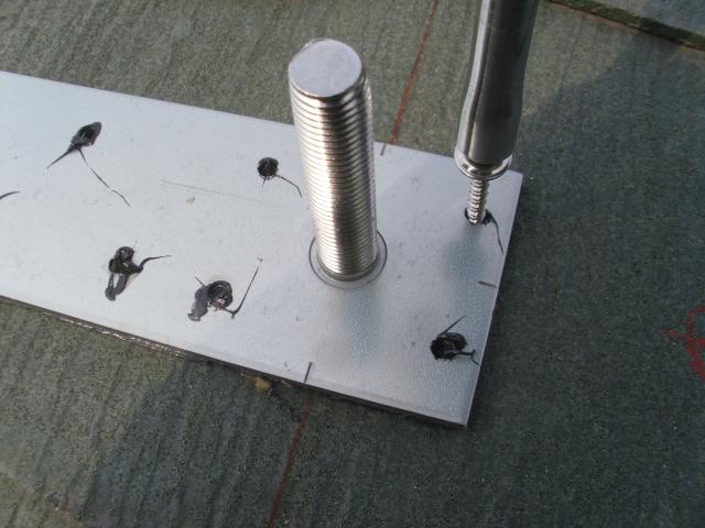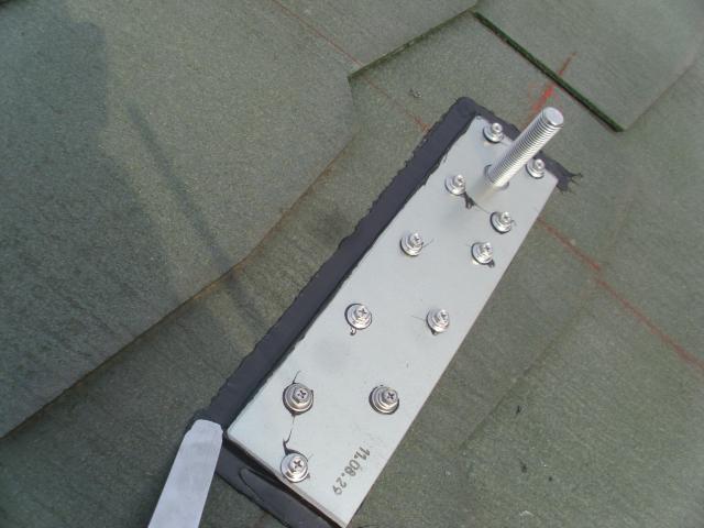 ↑ 支持金具の水上側(屋根の上方向)はさらにシーリングを施します。
