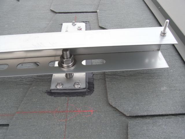 ↑ この支持金具へ架台フレームを取付けていきます。