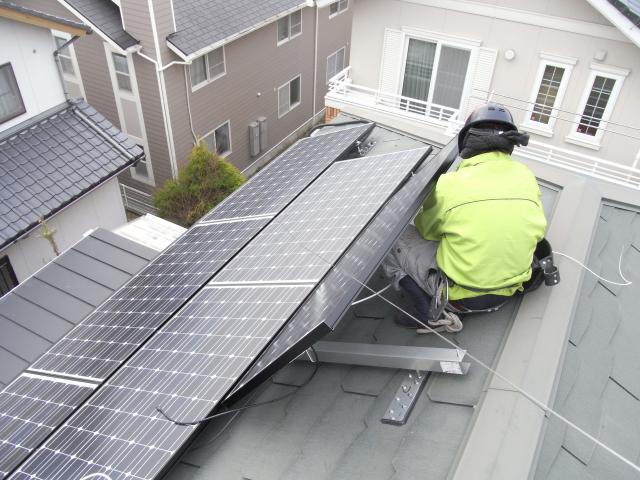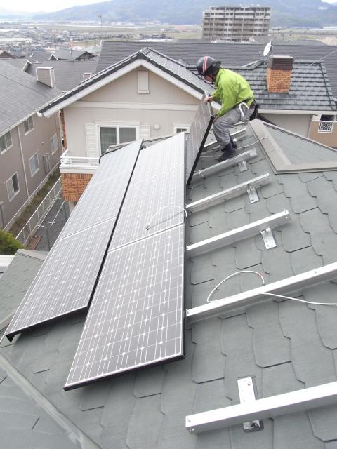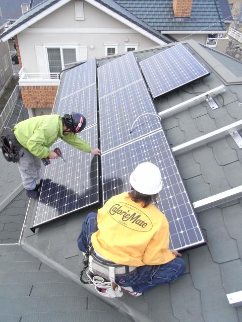 太陽光発電, 施工事例 2011年12月25日インターネットでお問合せ頂いたお客様宅のサンヨーHIT太陽光発電システムの工事です。