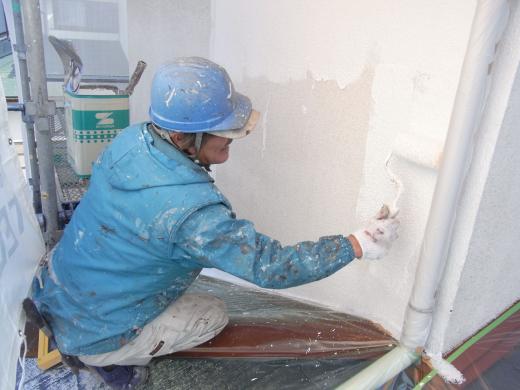 まずは、2階の外壁面の下塗り(下地調整材)を塗っています。