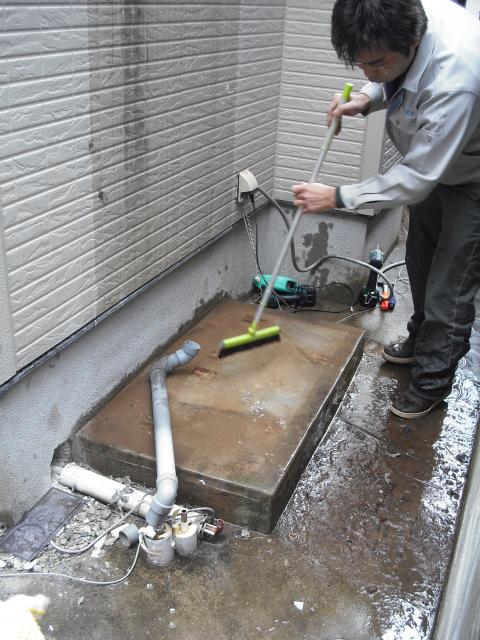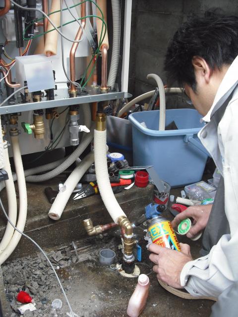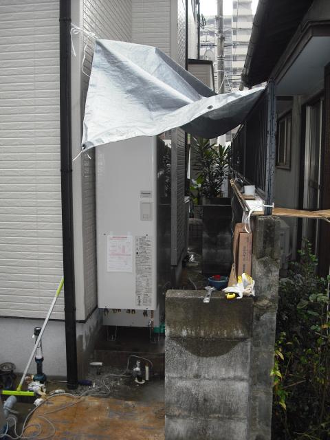 既存の温水器を撤去、搬出するのに1時間かかりました・・