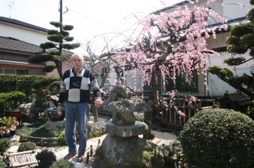現場に駆け付けると、満開の梅と・・・ご主人が手を入れた立派なお庭が。