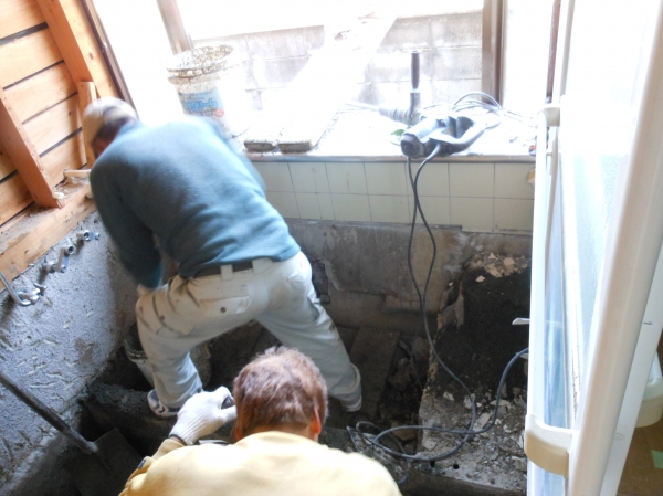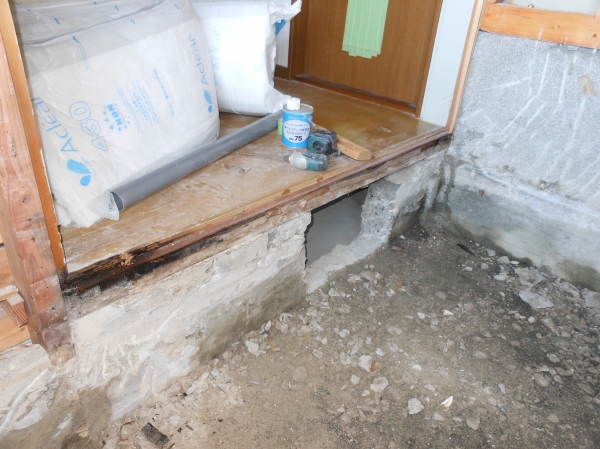 洗面所との間の土台(木材)も水腐れしていました・・