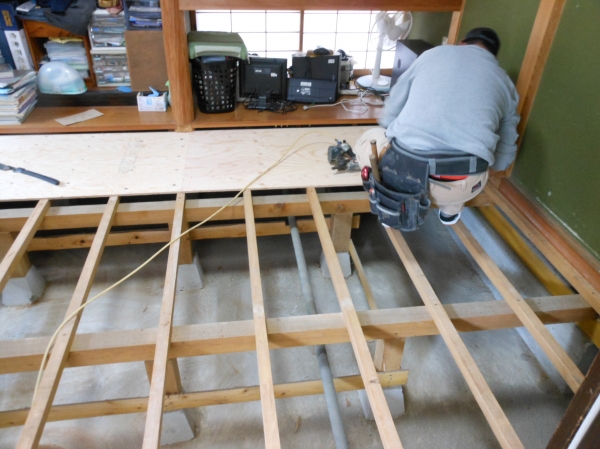 LDKの床が下がっていたのを他社で対策されたのに改善しないことをお客様が気にされておりましたが、