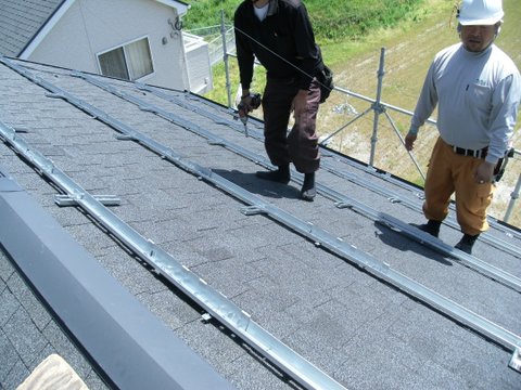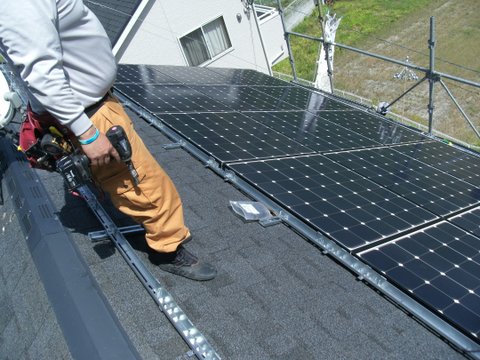 太陽電池モジュールを設置していきます
