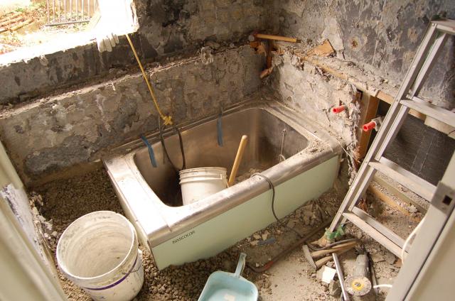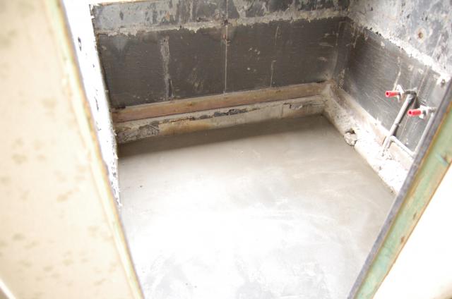 解体後、浴室の土間コンクリート打ちが終わったところです。