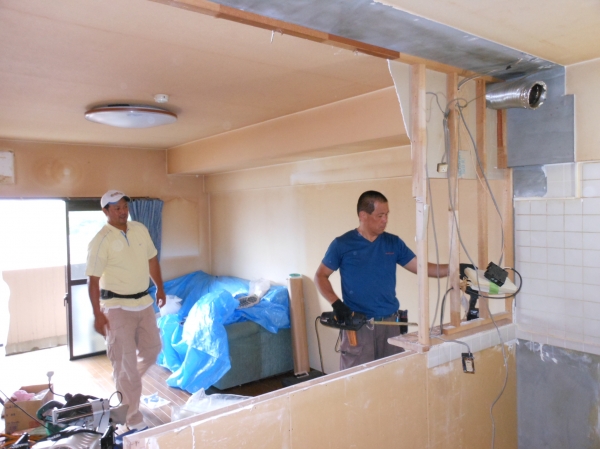もと、和室だった部屋の壁を撤去してリビングのスペースとつなげます