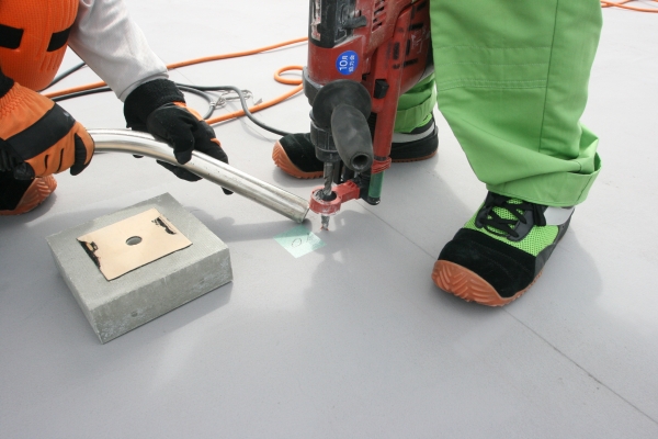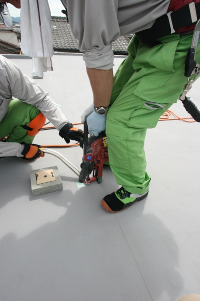アンカーボルトを差し込む為に、コンクリートの屋根に穴を開けています。