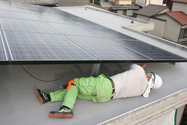 何事も、「見えない部分」が一番重要です。パネル裏の配線やコネクタも綺麗に整えながら設置されています。