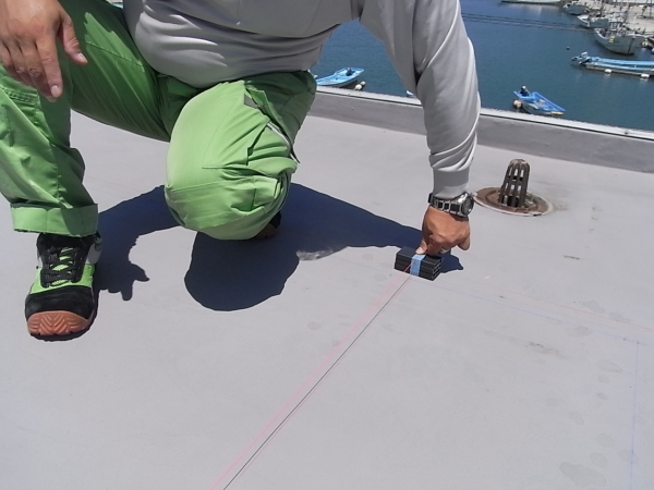 この現場調査の時点で、墨出しを行います。また、不陸(高さの違い)や施工にあたっての留意点を把握しておきます。