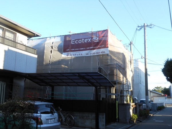 工程としては、まずは塗装工事のための足場と養生です。