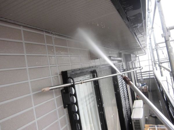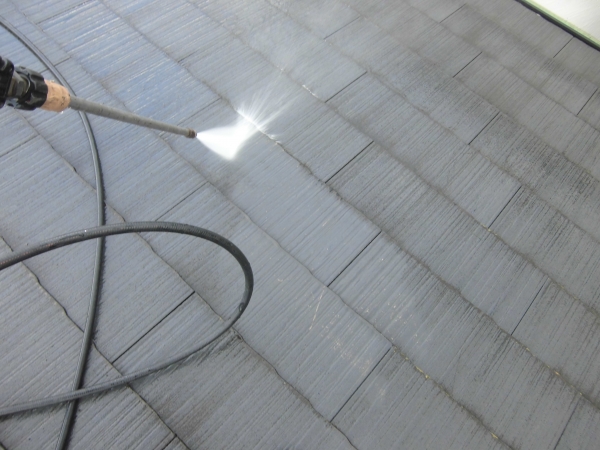 屋根を高圧洗浄しています