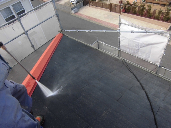 築13年経ったスレート屋根は素地が見えるほど塗装が剥げていました・・