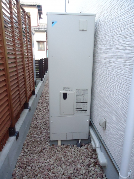 ダイキンのエコキュートも、配管・配線ともに隠ぺい、埋設してキレイに仕上がりました!