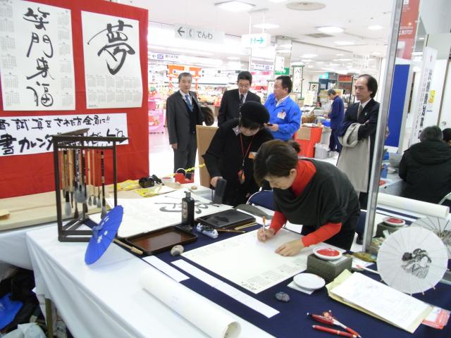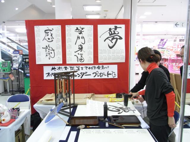 <大人気で、行列が絶えません・・・・・・書家:吉田 真紀先生の書カレンダーコーナー
