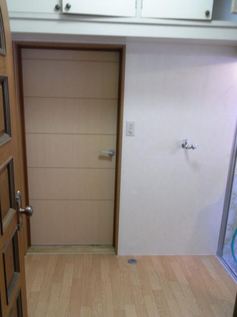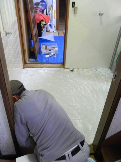 スタッフブログ, 施工事例, 浴室・洗面所 2009年4月19日こちらは、エコキュート工事でお世話になったお客様より、「ここにドアとか付けれる?」とのご依頼で、洗面台と居間(和室)を隔てる壁に開口を作り、ドアを取り付ける工事を行いました。