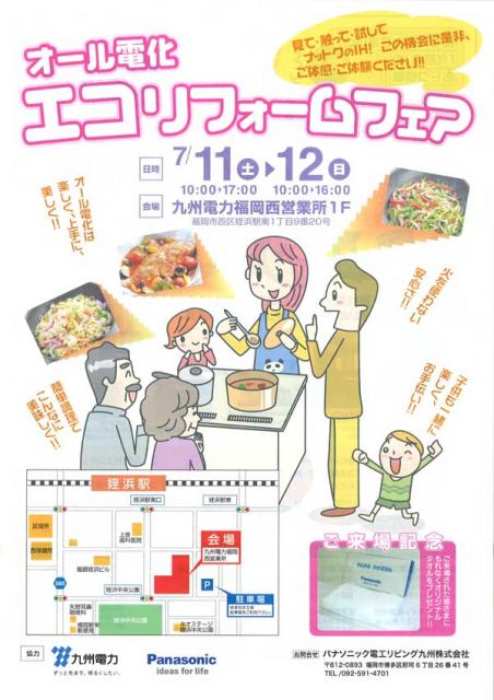 当社他11社の主催(九州電力とパナソニックの協力)で「エコリフォームフェア」が行われます!