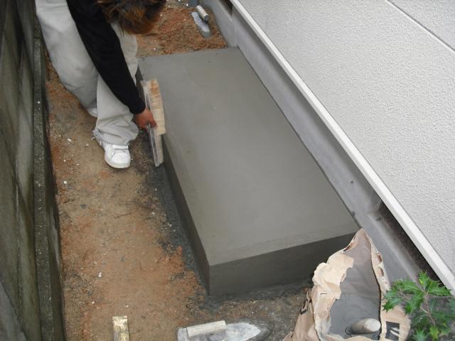 当社では、基礎工事において、水道屋さんが型枠にセメントを流しこんで行なったり、簡易型のエコベースなどは使う方法ではなく、本職の左官が基礎工事を行います。