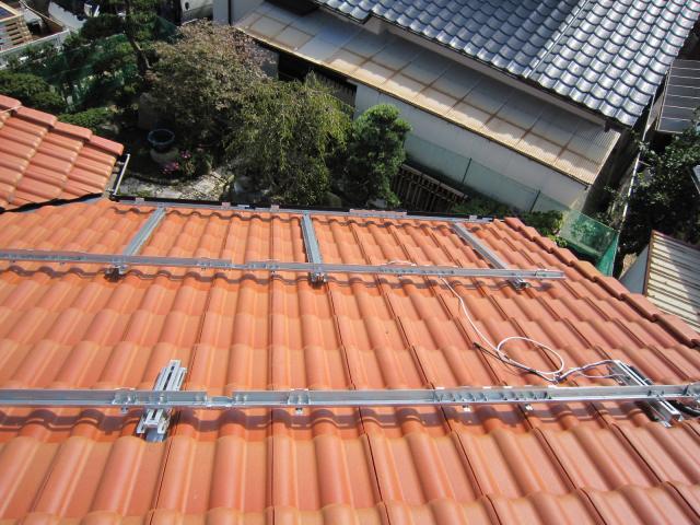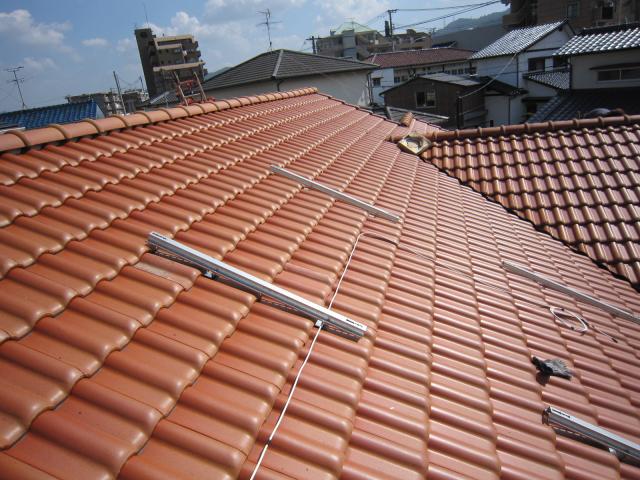 まずは、支持点にくる場所の瓦をいったん外して、金具を取付けていきます