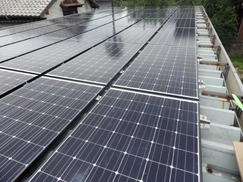 重ね式折半屋根に、Panasonicの240Wを42枚設置。