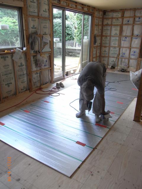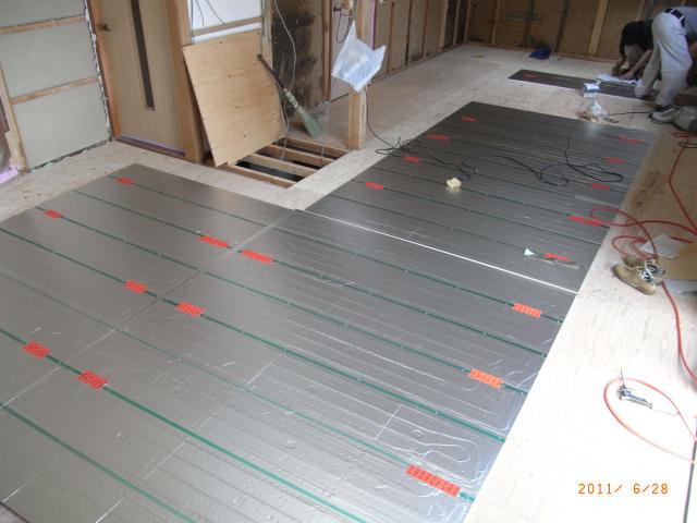 2011年7月2日 スタッフブログいよいよ、T様邸のLDKへのヒートポンプ式温水床暖房の工事です。