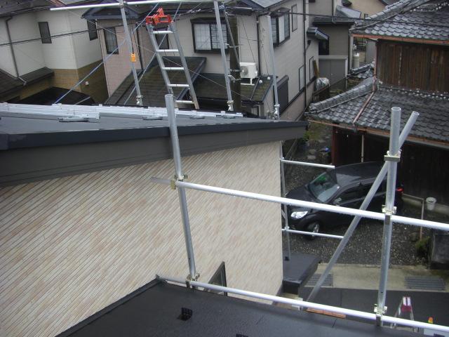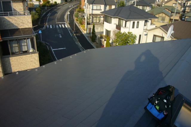 現場に着いて、しばらくする頃には屋根に上がらせていただきました!