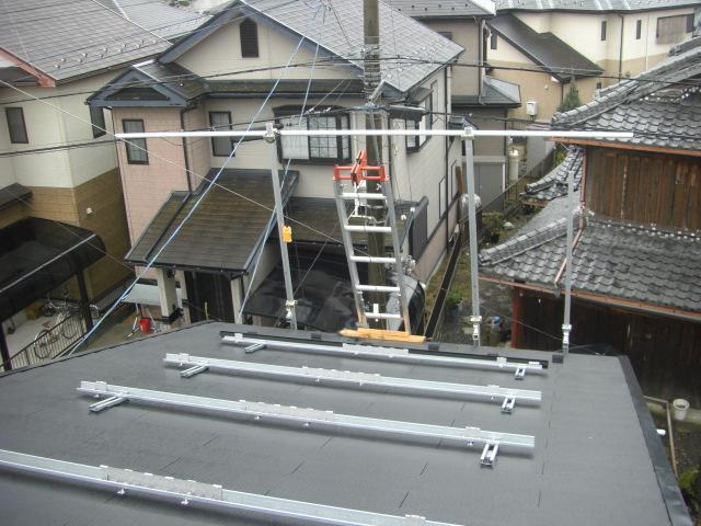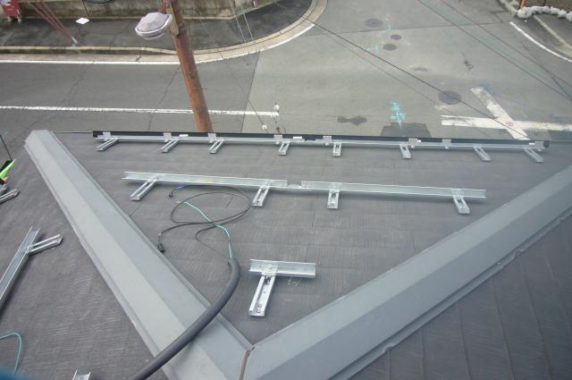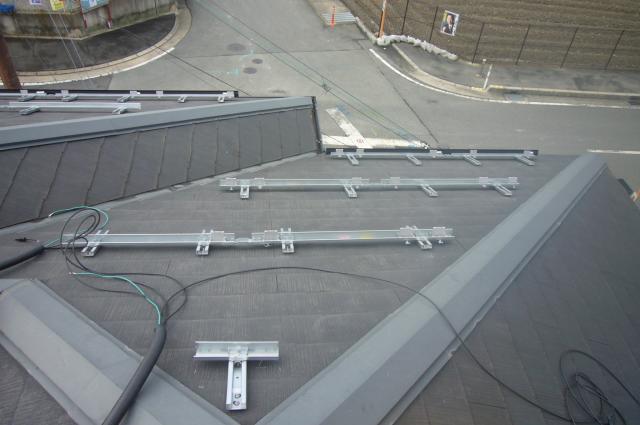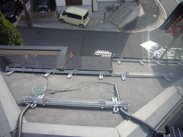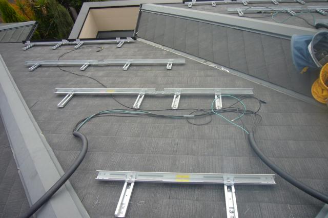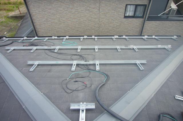 架台設置、パネル工事は瓦屋さんの分担ですが、屋根の配線、その他配線、電気工事はEテックスにて行いました。