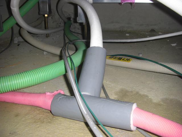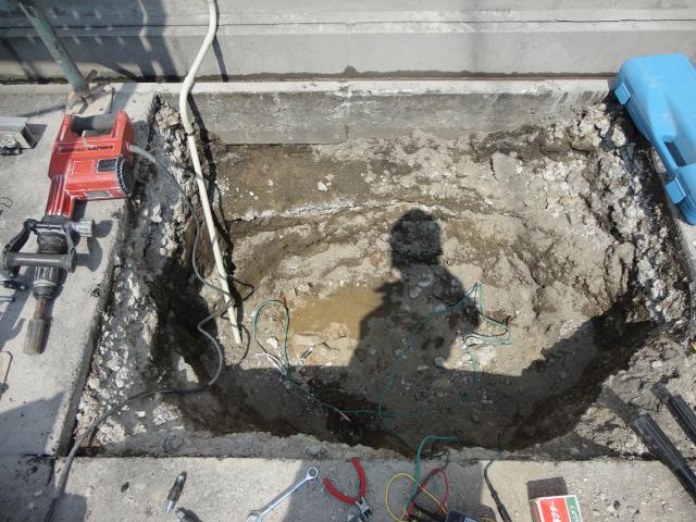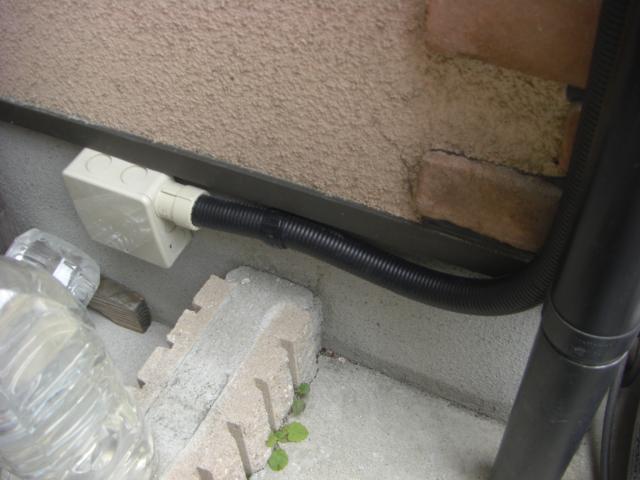 流します。穴はパイプのサイズに開け、両側からコーキングで