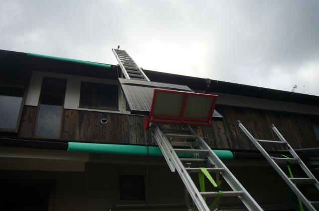 高所作業の為、ヘルメット・命綱など