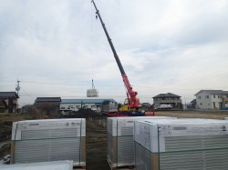 造成、スクリュー杭、防草マットときて今回は納品・荷卸しと架台工事です。