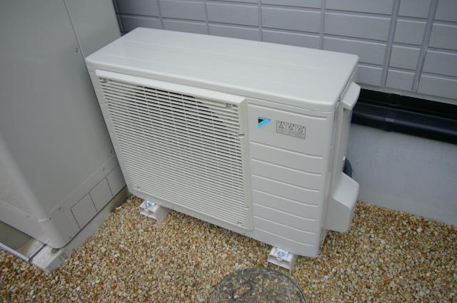 灯油タンクがあった場所にヒートポンプを設置しました。