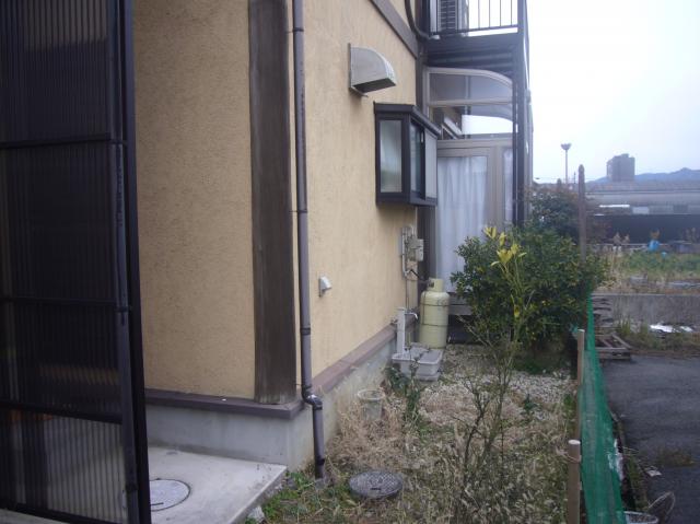 ガス給湯器の場所は上にお風呂の窓がありましたので、すぐ横に設置して配管を延長しました。