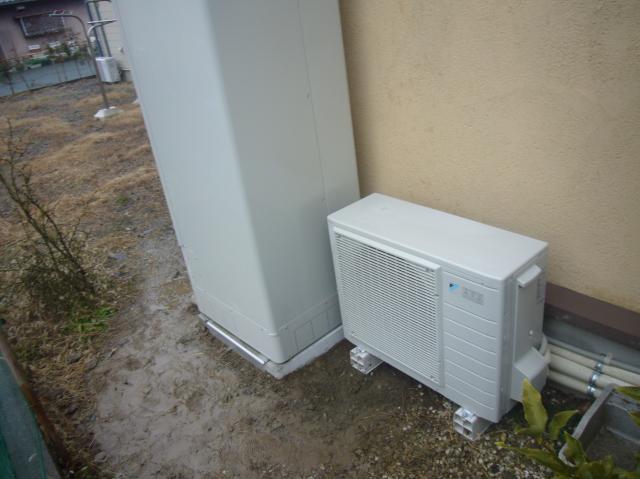 わかりにくいですが、エコキュートとヒートポンプ用の基礎を打って設置させていただきました。