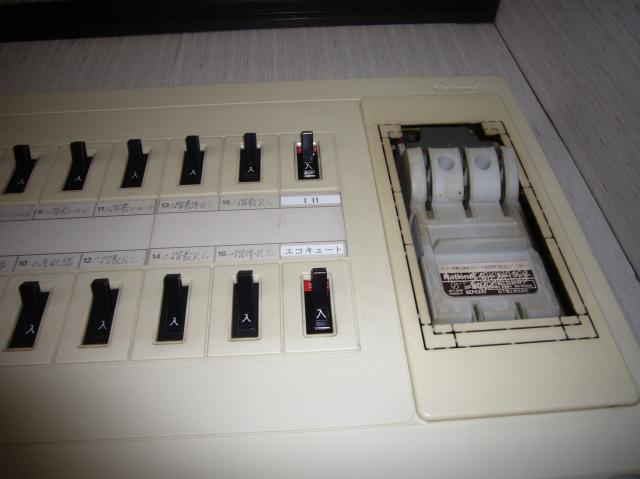 見にくいですがメインブレーカもIH,エコキュート増設にあたり、50Aから60Aに容量アップしました。