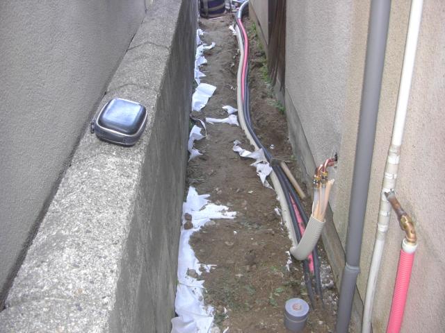 配管は土を掘り起こして、