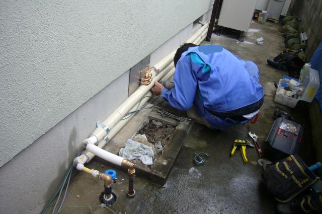 配管を延長しています。