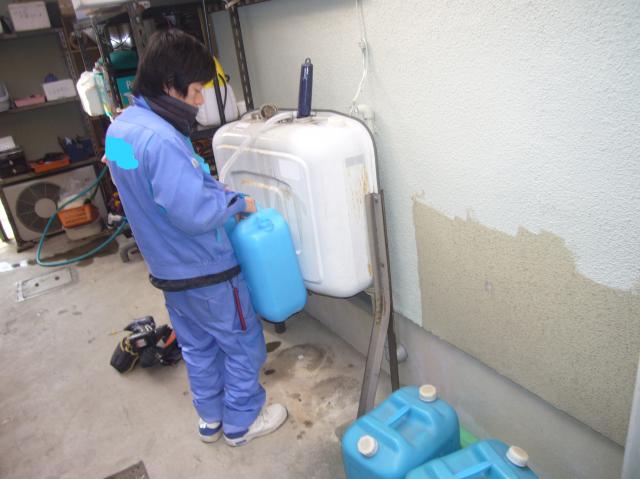 ポリタンクに移し替えてます。