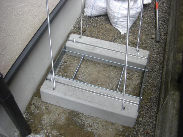 基礎工事中です。エコキュート専用のエコベースを使用します。