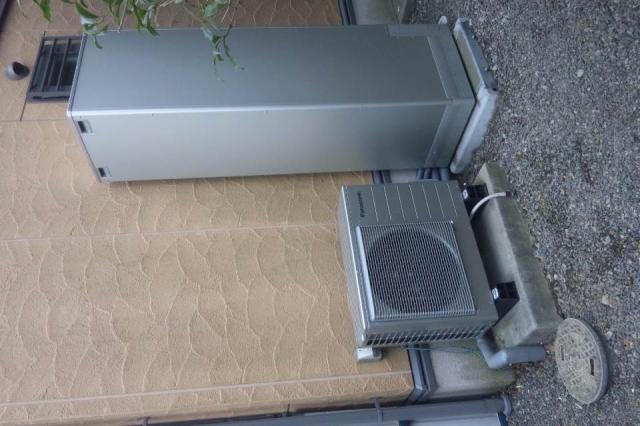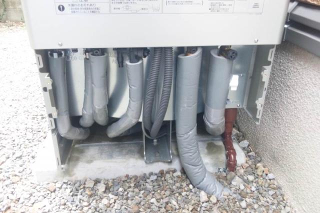 ガス給湯器の基礎にヒートポンプを設置し、