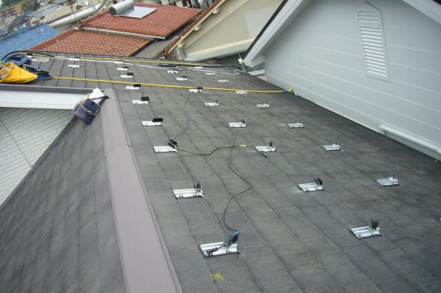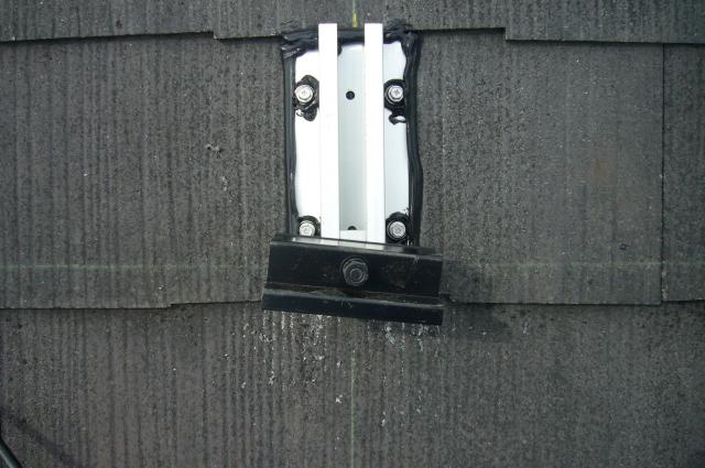 スレート屋根に東芝ラックレス工法です。