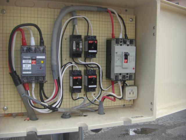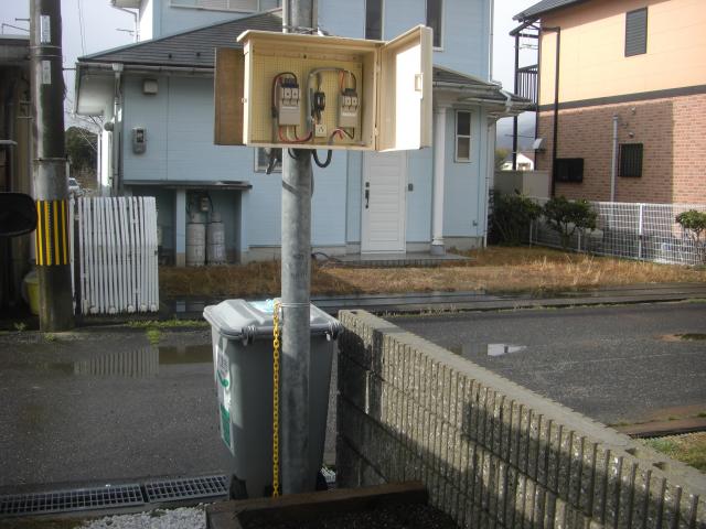 電源はポールにBOXがありましたので、ここから配線しました。