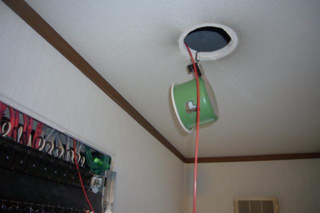まで、天井の隙間、壁の間に電線を通し 表に電線が出る事なく仕上げています。(^-^)