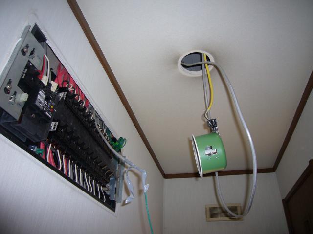 ウチの主任の職人技で、分電盤~ダウンライト~玄関前ダウンライト~お風呂の点検口~エコキュート