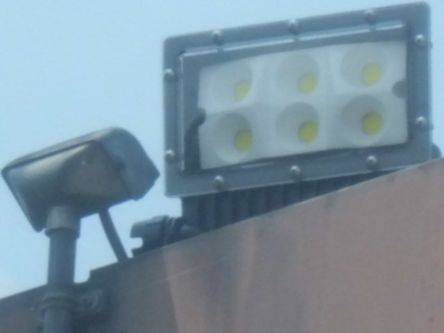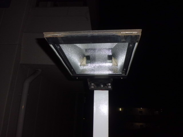 駐車スペ-スを照らす投光器も、水銀灯の投光器から
