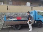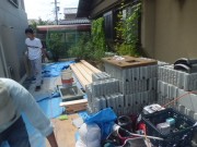 フェンスも改修工事をおこないます。協力会社の職人さんたちと材料の搬入です。