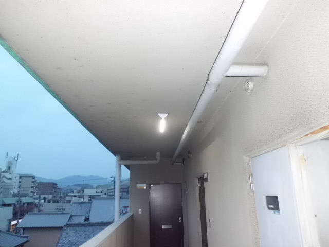階段、廊下のLED照明改修工事にお伺いいたしました。