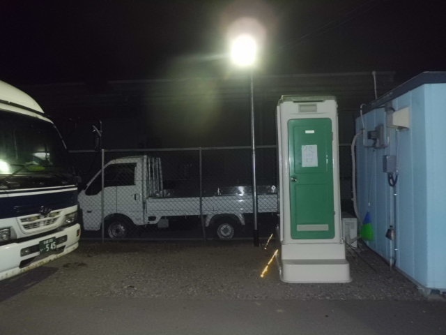 ので、プレハブに電気設備工事、送電手配、駐車場にLED投光器を