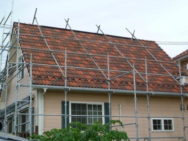 一部「10寸」と急勾配の屋根でしたので、屋根足場も設置しての作業となりました。